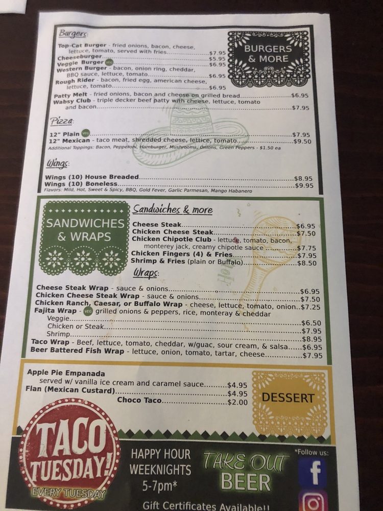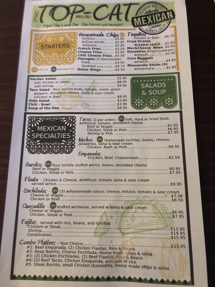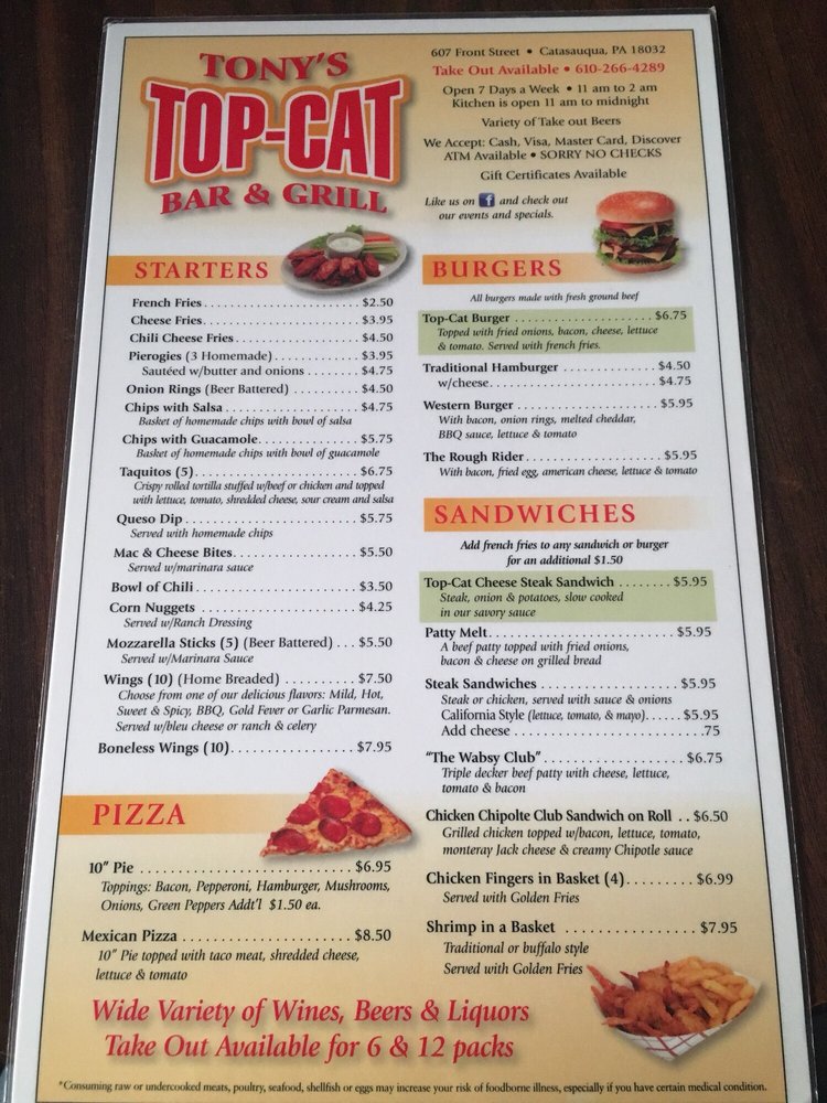 Tony's Top Cat Bar & Grill Menu (Update 2025)